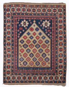 Period: Mid 19th Century Origin: Shirvan Dimensions: 135 x 165 cm This rare mid 19th century Caucasian Shirvan Kuba prayer rug highlights a powerful and ... read more