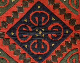 Ersari Broad cloth Applique Asmalyk, 4th quarter of the 19th Century. Wool felt applique. Wonderful graphic. Saturated green, deep indigo, red, brown ... read more