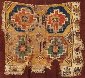 Outstanding eighteenth century carpet fragment from the Cappadocia region of Turkey featuring the so-called 'Memling gul’. This impressive fragment is mounted on ... read more