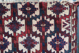 c. 1870 Uzbek pile napramach bagface. 32"x16". Excellent color. From a major collection. Email: patrickpouler@gmail.com