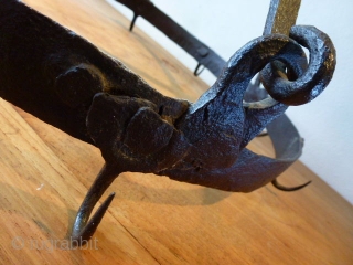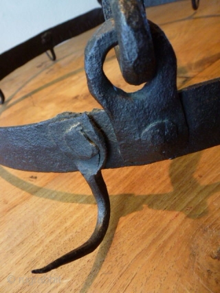 Something different: Wrought iron game rack. !9th century or earlier. Imho should be at least 200 years old. European. Hand forged. Size is cm 44 diameter. Weight is 3.5 kg ca. In very good condition. a very pleasant item, functional and beautiful.