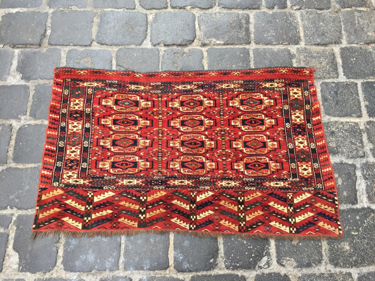 Turkmen chuval late 19th century with very nice colors yellow,green and blue.