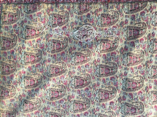 Here i am offering a very old Termeh Textile either from Yazd or Kerman. This came out from a local Persian family, i was told that this Termeh has been in their family for 7 generation, could be from Qajar Dynasty. Overall, is in good condition for its age, the only thing that i must mention, also, i have shown in the picture, there are small holes in the middle, please, refer to the pictures and view the close-ups. Also, this is a signed and dated piece, i wasn't able to read the date but if you refer to the picture #4 you could see the signature. It measures 3'-6" x 3'-6".