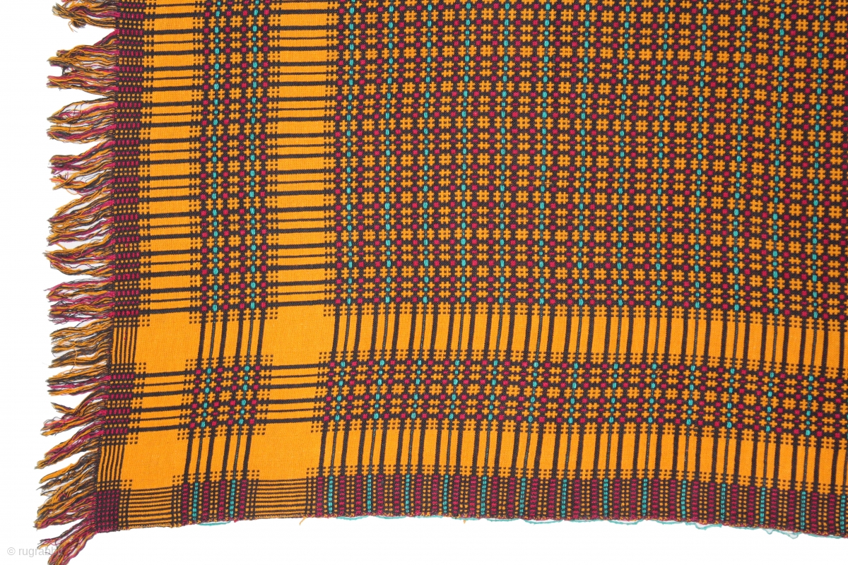 Woven Cotton Coverlet (Khes) with Geometrical Pattern Woven on a pit-loom using a Double-Weave Technique from Nasarpur or Thatta, Sind Pakistan India.Circa.1930.Its size is W-126cm x L-222cm.(DSL05360).