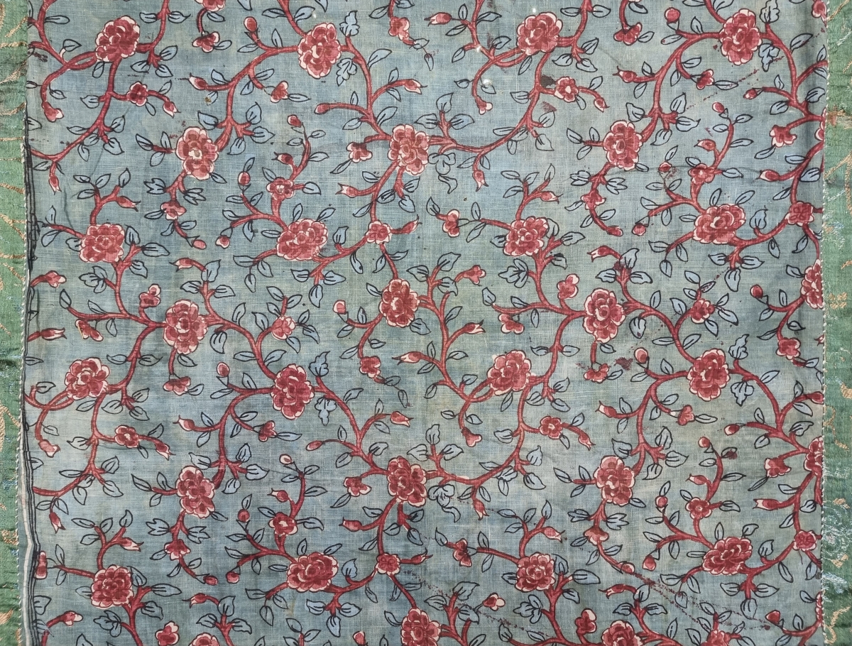 Floral Chintz Kalamkari Fragment from the Album, Hand-Drawn Mordant-And Resist-Dyed Cotton,From Coromandel Coast South India. India.