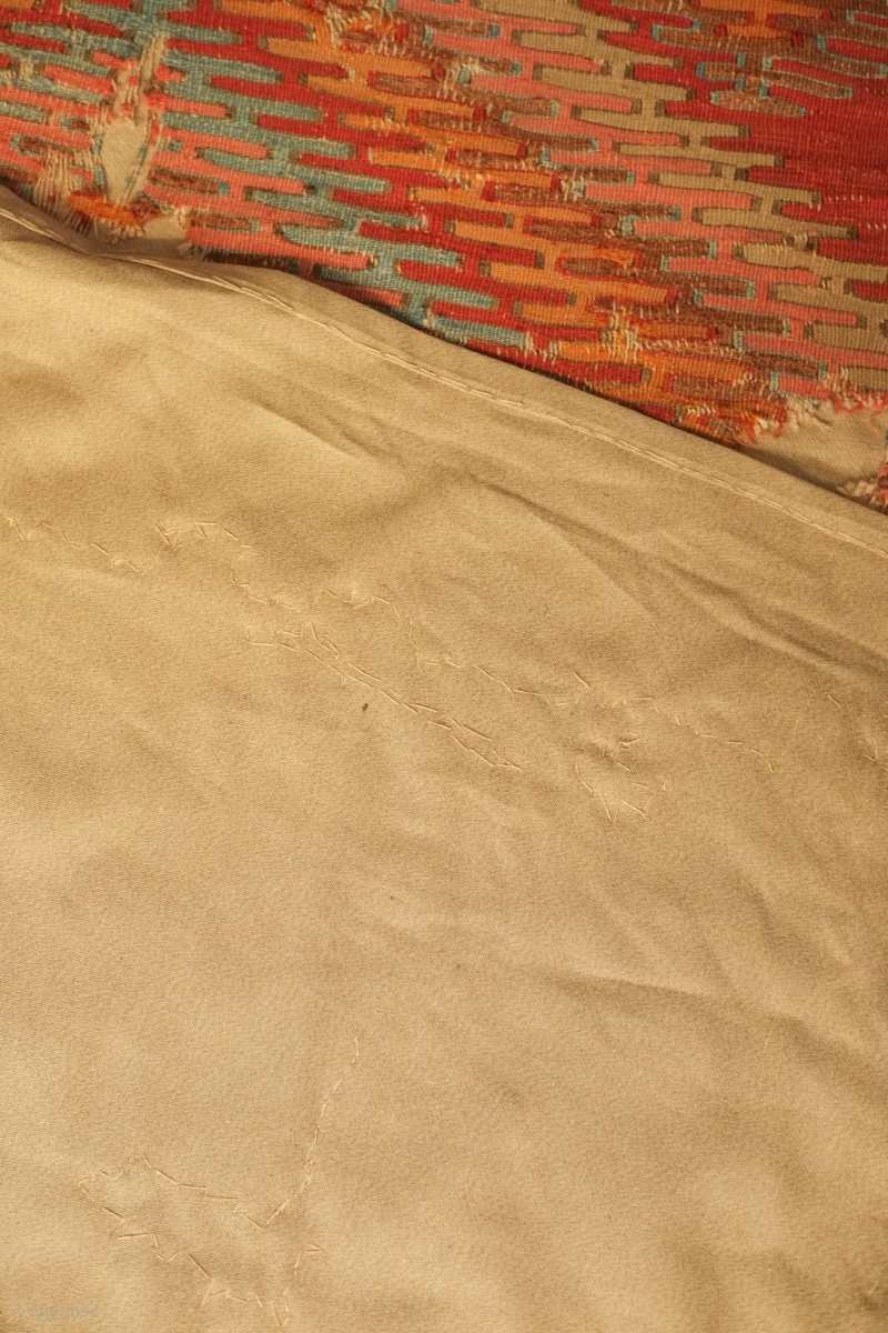 Sivrihisar or Afyon kilim, early 19th century or possibly earlier. Excellent colors. Mounted on linen. 145 x 248 cm, linen 162 x 265 cm. Contact danauger@tribalgardenrugs.com