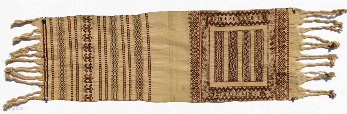 Two different design panels woven together, to be cut in the middle and attached at each end of a sirat.