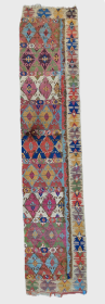 Textile bin clean out. Fine old jajim fragment. Narrow pieces sewn together. Dark wool warps. Origin? Lovely old colors. 19th c. for ... read more