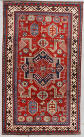 This circa 1870 Borchalou Kazak #7623 with Akstava motif measures 4’1” x 6’8” (125 x 207 cm). This is one of a ... read more