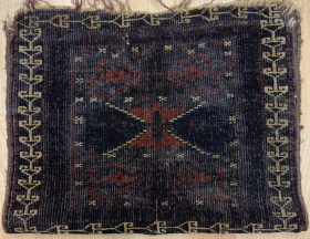 Smaller Baluch main carpet. Good age, color graphics, and handle.