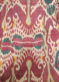 Uzbek Quilted Ikat Chapan, 19th century. An old one quilted for the winter with the designs nicely arranged on the back. ... read more