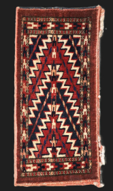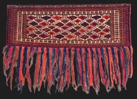 Antique Tekke Turkmen torba of very fine weave, with 'curled leaf' design. Torba are shallow wall bags used mainly in tents or ... read more