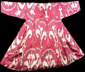 Uzbekistan Fargana Valley Silk women's İkat Chapan & Robe. Linen with floral design roller printed Russian cotton and silk İkat facing. İt ... read more