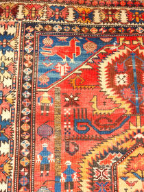 vibrant folk art filled shirvan with just a bit of wear . about 4 x 5 feet look on my boylston associates ... read more