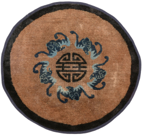 Small auspiciously designed circular rug from Inner Mongolia, i.e. the Baotou / Suiyuan region of China. The design features the central Shou ... read more