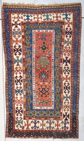Rare Antique Eagle Kazak rug (Chelaberd / Sunburst), Caucasus circa 1800 a remarkable early example of the famous Eagle Kazak rugs: This rare ... read more