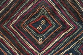 Marash jijim clothing bag. 19th century. This ethnographic bag has a deep indigo ground and seven colors in the jijim work. ... read more