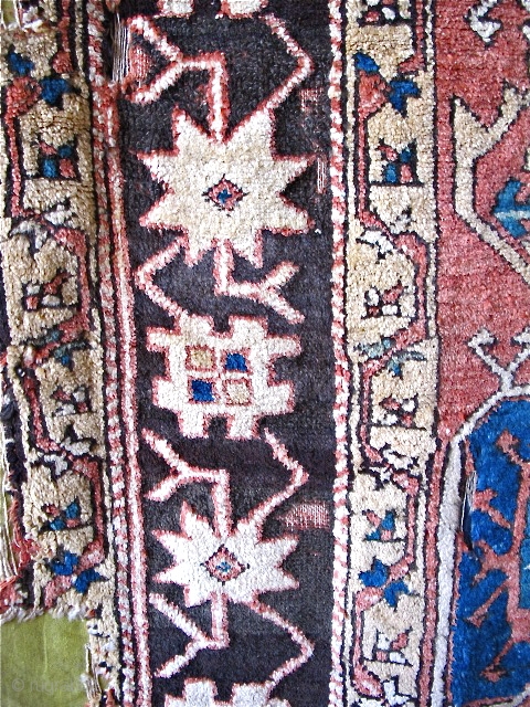 18th century Star Bergama Fragments, 2/3 of the rug, (i don't know why it was cut or where the final third is.) Several examples of this type are known. This piece has thick pile in places, good west Anatolian color including several greens and a highlight in silk pile. There is also a stain but i have not tried to clean it.