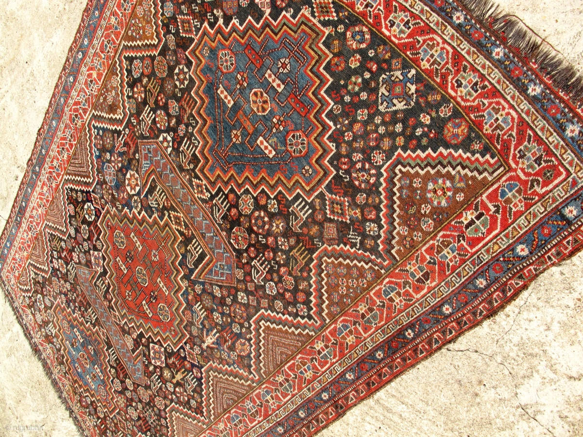 19th c. Qasqai? Large size 110 x 74 inches. Good condition. No repairs or holes or problems. even low pile.