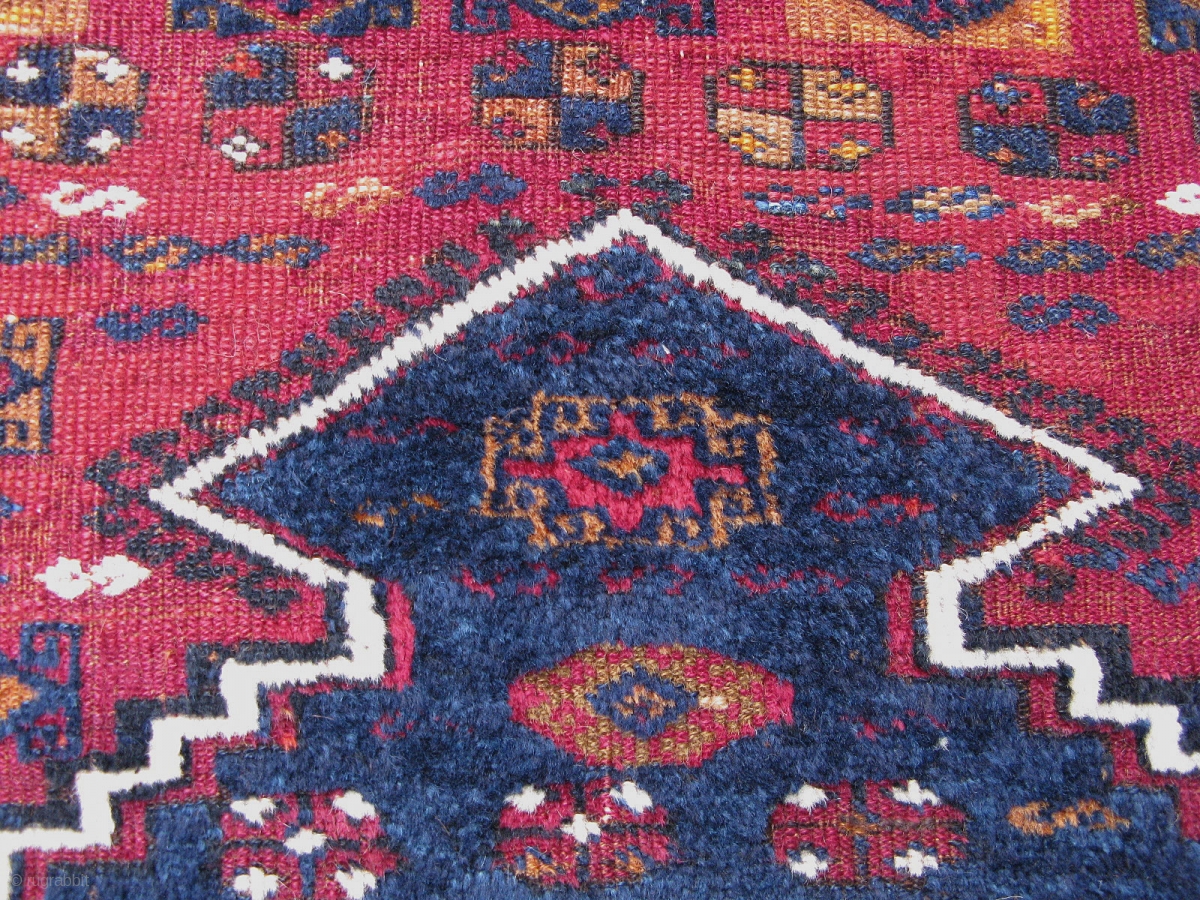 Anatolian Kurdish prayer rug circa 1890. 3'10" x 4'7" a couple of small old repairs. The blue and orange colors are in thick full pile while the purple color is lower. Beautiful saturated colors. You can view on Nomad Rugs website here: http://www.nomadrugs.com/page/NR/PROD/5827 Free shipping in the us.