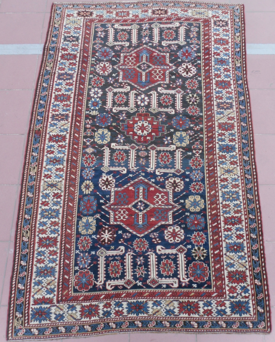 Antique Caucasian Karagashli Kuba Rug, 68x54 inches, good condition, as found, late 19th century.