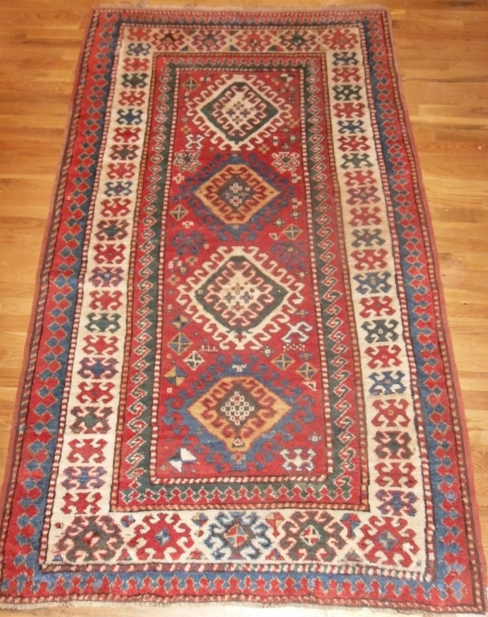 Antique Caucasian Kazak Rug, 3.11 x 7 ft, Excellent Condition with full pile, as found, no repairs, 19th Century. www.RugSpecialist.com, Gallery: Binbirdirek Mah, Peykhane Cd, Ucler Sk, Ersoy Han, 48/2, Sultanahmet, Istanbul, 34122, Turkey. (Appointment Recommended)