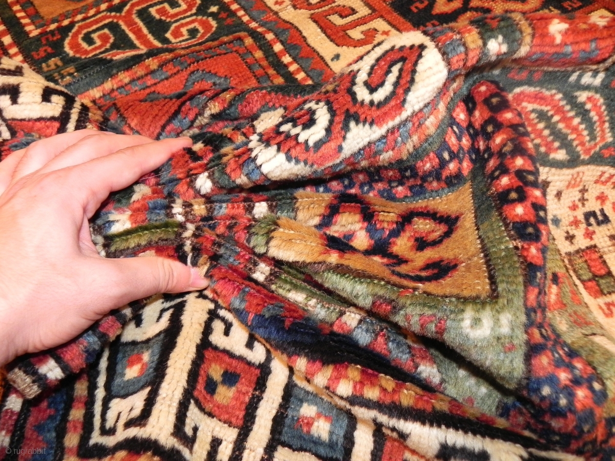 Antique green field Caucasian karachopt Kazak Rug, 4.2 x 8.1 ft (128x247 cm), ca 1875, very good original condition, no repairs, would benefit from a light wash. (also called Karachov, Karatchoph, Karatchopf or Karatcop Kazak)