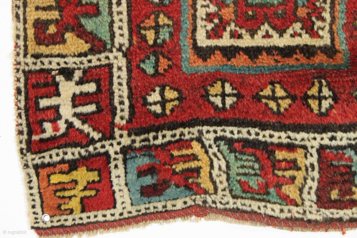 Antique karapinar yastik. Interesting design. Thick high pile. All good natural colors. Small well done repair of one corner. Clean. ca. 1875. 22"