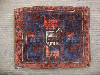 a Baluch Bird-bag, Circa 1880??? Good condition with original back, Good pile, Nice colours & shiny wool, Not restored, Size: 56 x 46 cm.