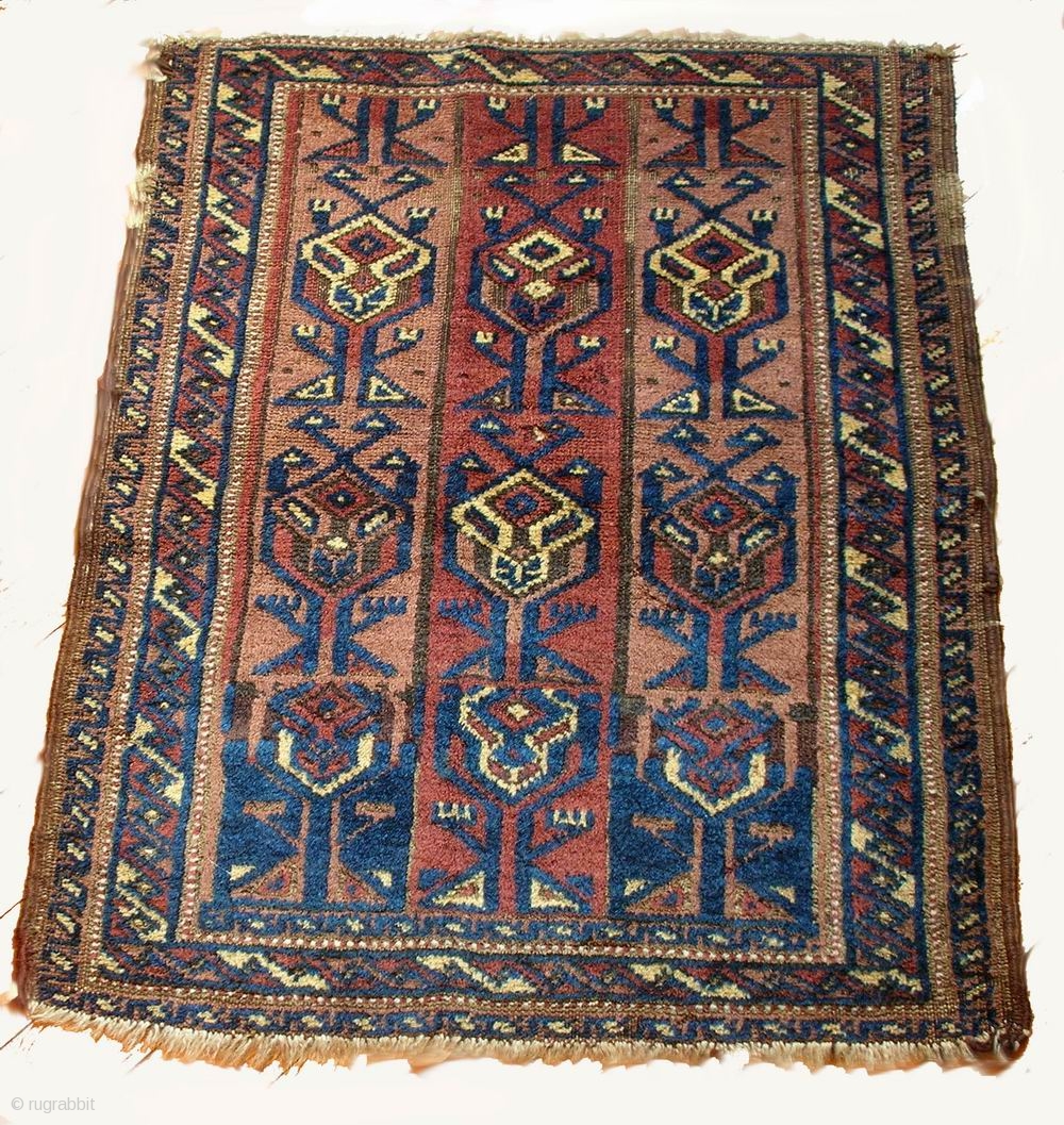 Baluch rug, late 19th - early 20th century, cm 84x69. Among the variety of things within textile art i am unaware of, i know next to nothing about Baluch weavings. i liked a lot the motifs in the field, though, so there we go with this small, charming rug. It has a tiny hole in centre, very slight localized wear, and it is missing the outer border in upper part. Quite a graphic thing anyway. Floppy handle, good pile and excellent quality of wool.