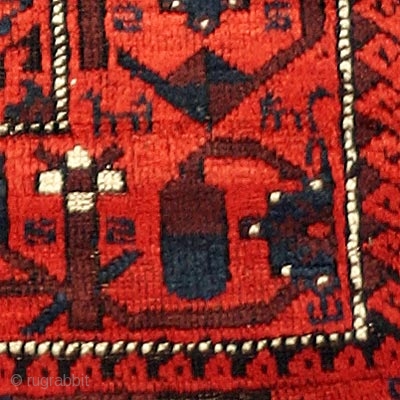 Baluch Rug, Late 19th or Early 20th Century, 63 x 34 inches, Inv# 1338 ------- Amazing glowing red, thick lustrous pile overall with only a few corroded spots, great expressive design, wonderful animal details, selvedge in tact, knotted ends at top, all vegetal dyes.