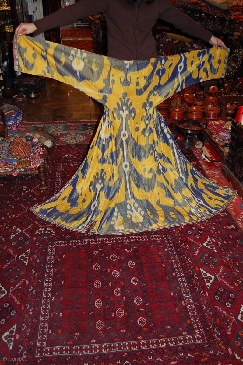 Beautiful 19th Century Uzbek Ikat chapan, great yellow colour.
