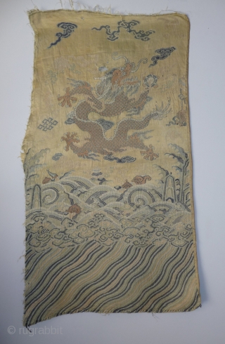 beautifull early 18th century 5 claws dragon robe fragment with a rare pale green background color. silk brocade, china . approx. 80x 50cm
