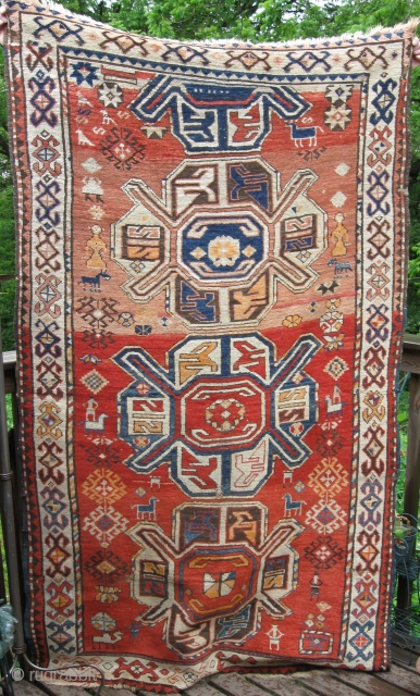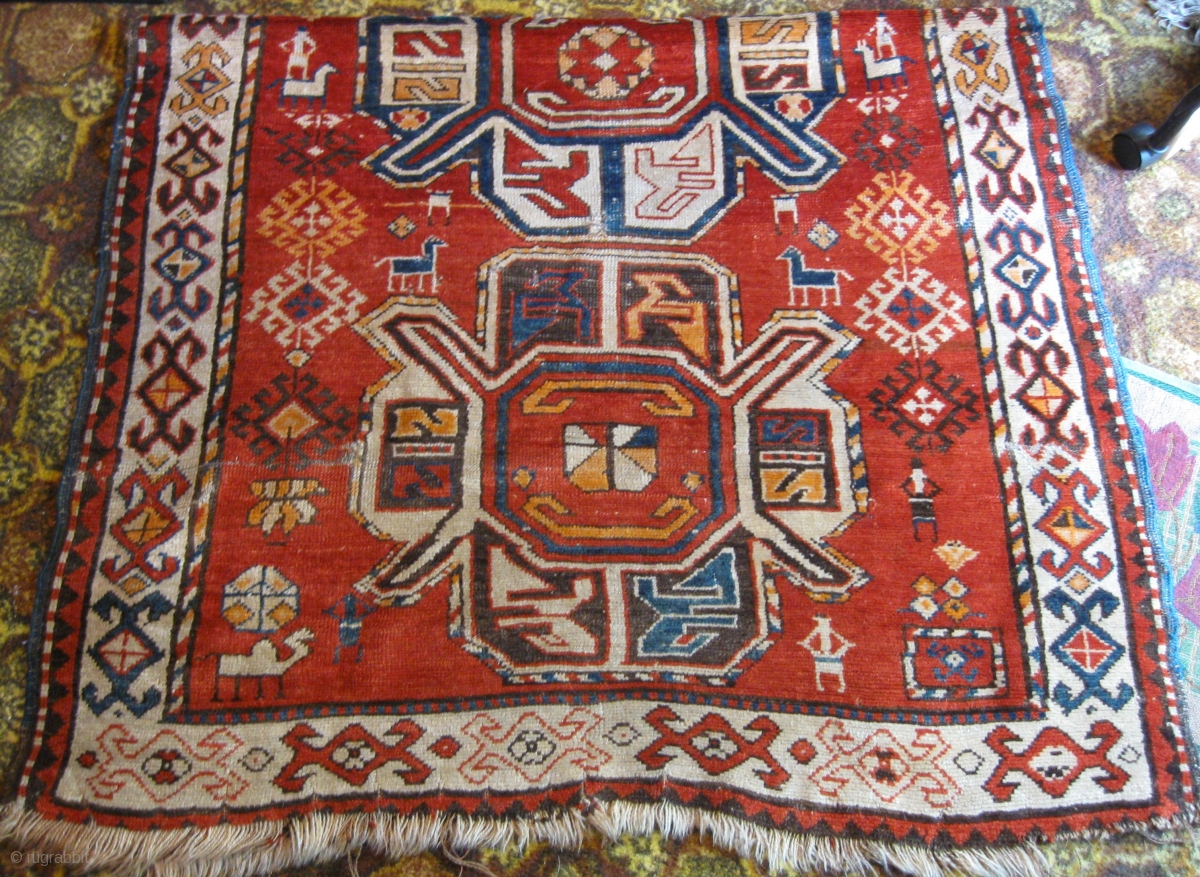 Caucasian 4 x 8 nice wool, heavy floor hugger. Interesting drawing.