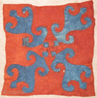 Central Asian Kyrgyz Shyrdak square. Madder red and indigo blue dyed and pieced felt.
