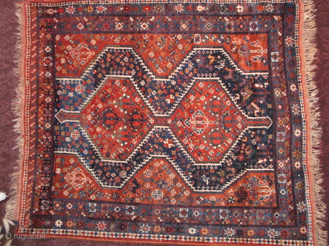 Circa 1910 Shirazi tribal rug. Qashq'ai 5'1"x6'0". All good colors and all original with mostly full pile throughout. Check it out on our website here: http://www.nomadrugs.com/page/NR/PROD/2106 Thanks for looking! Chris, Nomad Rugs