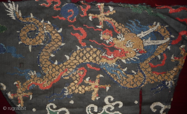 early 18th century silk brocade fragment with gilded paper threads. probably lower part of a dragon robe. china.