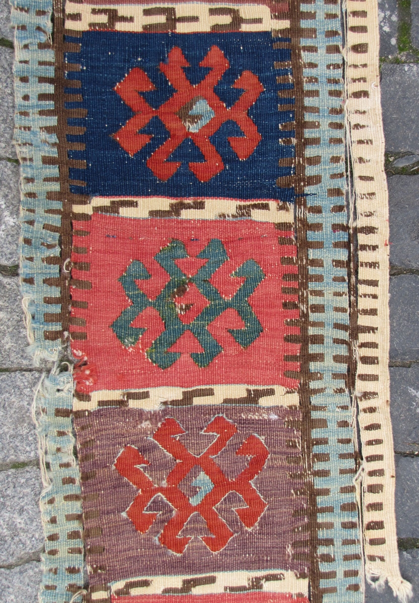 Early Hotamis kilim border fragment. 7'5"x1'3" (230x37cms.) Note the vestigial traces of the Turkoman design pool.