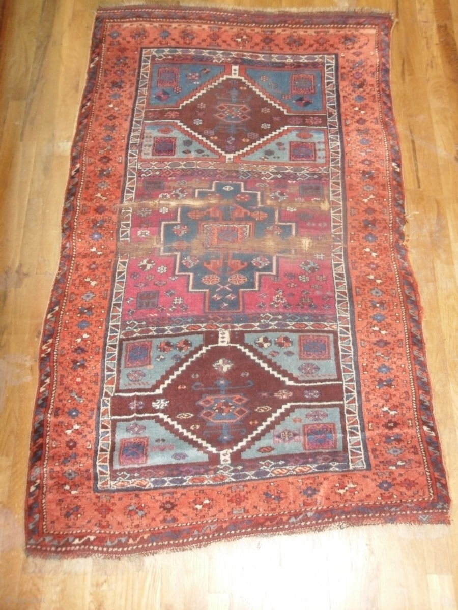 East Anatolian Kurdish Rug, 5.11 x 3.7 ft, 19th Century, as found, needs some restoration in the centre of the field. www.RugSpecialist.com