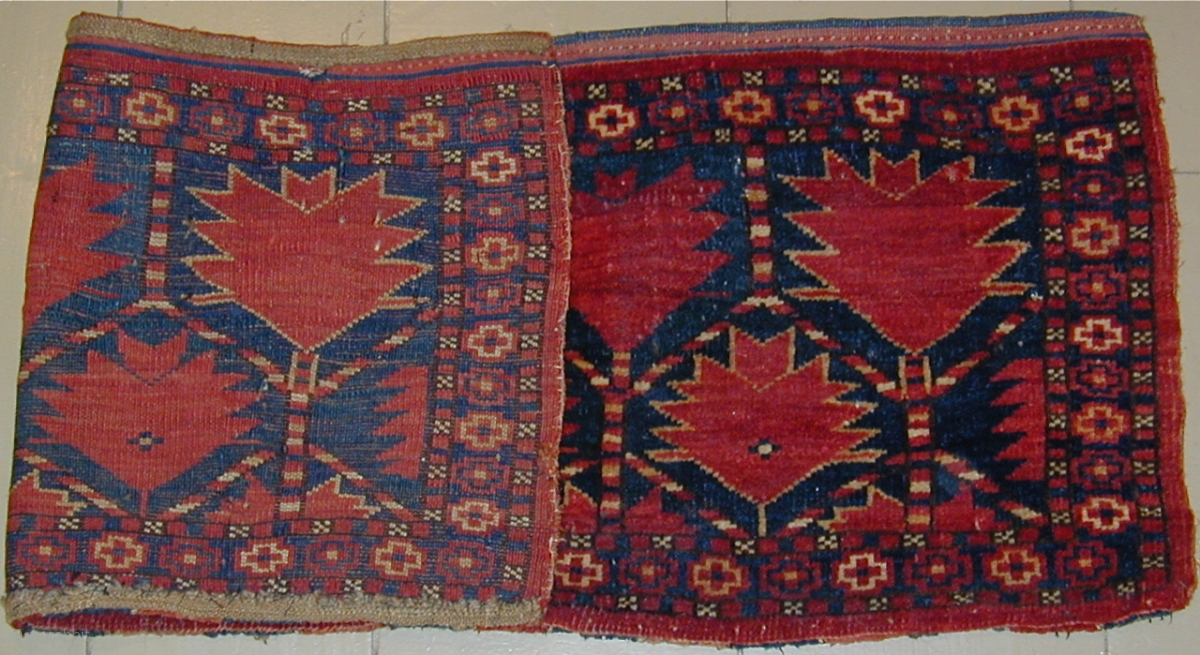 19 century Ersari Torba in mint condition, red wefted throughout, wonderful old colors including yellow, original side finishes as well as original top and bottom finishes,