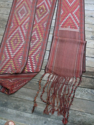 Judging from its wear and appearance, this tent band adorned a tent somewhere in the Middle Amu Darya Valley in Central Asia. It was made in the first part of the 20th century and is still in very good condition. It is all complete including fringe and tassels on both ends. There are a few small places where repairs have been made. The most obvious repair is shown in photos 9 and 10 which shows the front and back side, it seems they were done as needed by the original user. In some areas the silk details are a bit worn (photo 8) i believe this also is from its intended use as a tent band.