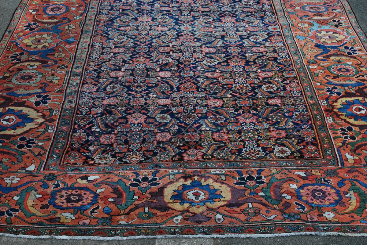 a great antique Feraghan carpet with magnificent main border just acquired from an old Scottish house. The carpet is in good condition overall with some small areas of wear but nothing serious! Very decorative!