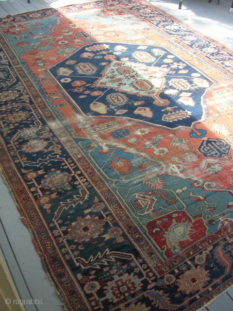 Here we have an old serapi, size 13'9"x9'4" in need of restoration. It is a pretty carpet in my opinion.