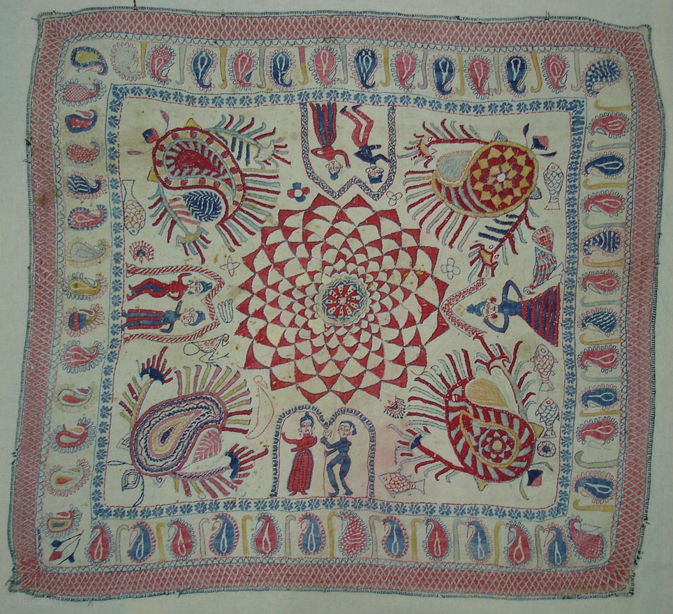Kantha Quilted and embroidered cotton kantha Probably From East(Bangladesh) Bangal region.Its Size is 67cm x 74cm.(DSC09408)