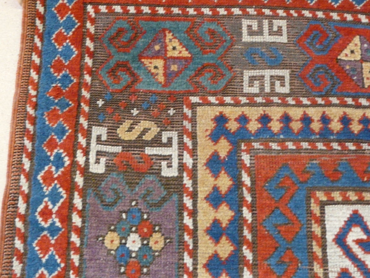 Kazak rug, 2.40m x 1.50m, 7'10" x 4'11", 19th century. Very well-balanced design with some early features. Some minor damage, old repairs and corrosion/ replaced browns.
