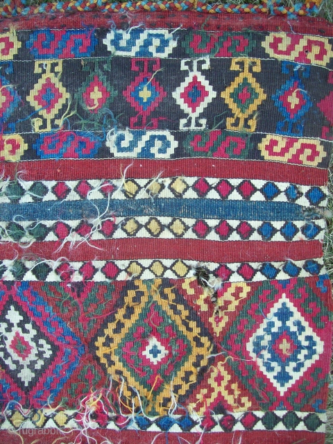 kilim bags 2.5 x 10 complete but not stiched together. Used as a runner. Some holes, filthy dirty,