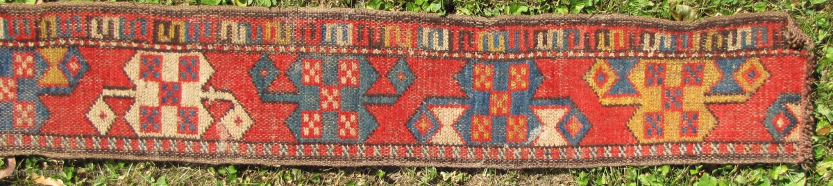 Kirghiz piled tent-band fragment. Single wefted. Wool. Faint traces of color run on back. 6'3"x 0'7.5"
