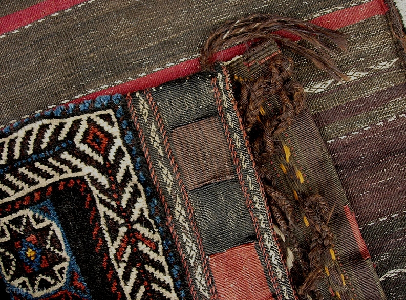 Large Belouch bag 2.6 x 2.7. Early 20th Cent. Goat warp. Lots of fine brocade work. Condition is perfect. $15 to ship anywhere in the us.