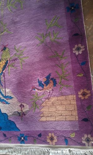 Old Art Deco Chinese 1900's 4.01"x6.7" this rug has the fringe replace buy machine but the pile is in perfect condition no stains www.francorugs.com