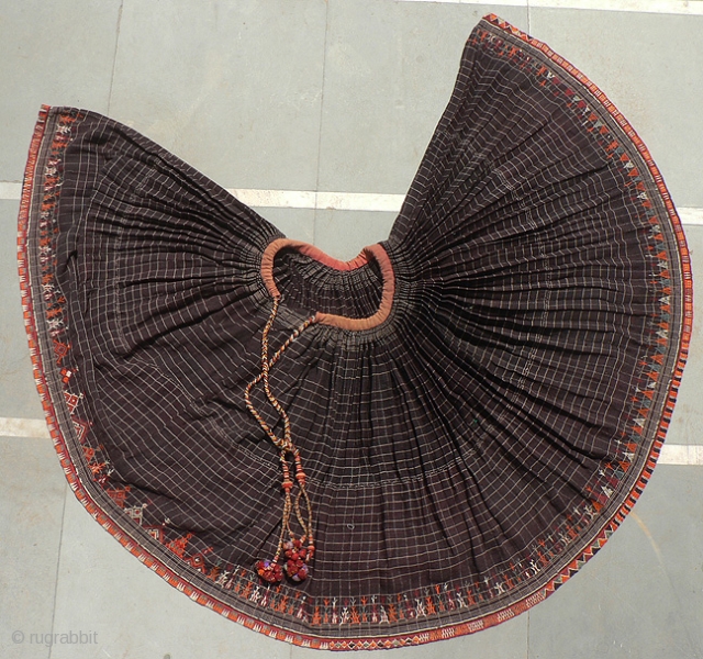 Old Handloomed Kutchi Skirt, worn by Vishnoi Caste women in India. Incredible 24 feet around the bottom hem, which has been embroidered all around. 31 inch length from waist to hem. Heavy wool with many pleats. Price includes shipping in the us.